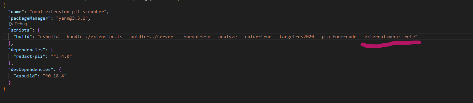 dependencies: # Optional field allowing auto installation of yarn packages required by an extensions in the same format as package.json. This is experimental and will likely change